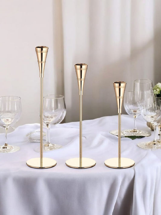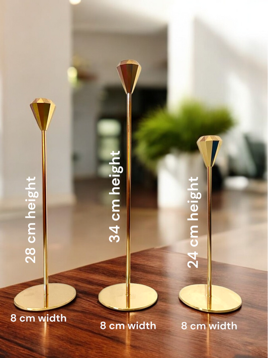 Set of 3 Golden French Metal Candle Holders-Diamond Shape